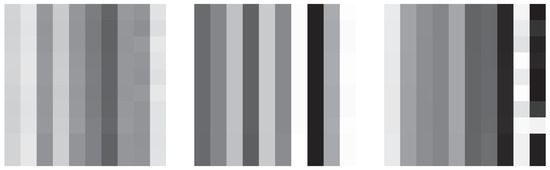 Received signal strength (RSS) grayscale under different labels (Labels from left to right are ‘2-2’, ‘2-6’, and ‘2-10’ respectively).