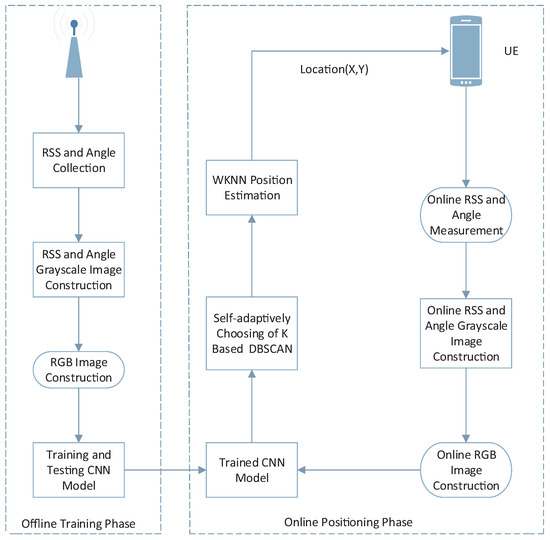Complete CNN positioning system implementation (offline training phase and online positioning phase).
