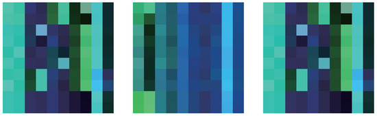 If the RSS value in (3) is less than −110 dBm, it is represented by 0 [36]. Additionally, if the angle is greater than 180 degrees or less than −180 degrees, it will be represented as 180 degrees or −180 degrees, respectively. The input of CNN is generally square matrix, which requires the same number of APs and sample times. In this paper, the number of APs is ten, and the number of samples T should also be ten. To merge Figure 1 and Figure 2 into RGB images, one of the three channels will be set as zero. Therefore, the RGB image can be shown in Figure 4.