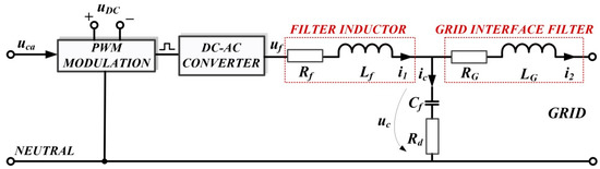 If, in the previous section, the description equations of the controlled system are usually linearized to obtain a robust controller, in this section, the PCH theory will be used to obtain a nonlinear controller, which will have superior performance. Thus, Figure 10 shows the schematic single-phase representation of the controlled system.