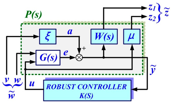 These can be represented schematically as in Figure 3. The role of the robust control is to find a controller K(s) capable of minimizing the H∞ norm of the transfer function from the external inputs to the quality quantities . ξ, μ, and W(s) represents the weighting parameters, which will be specified in the robust controller synthesis algorithm.