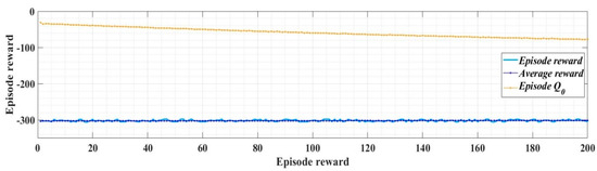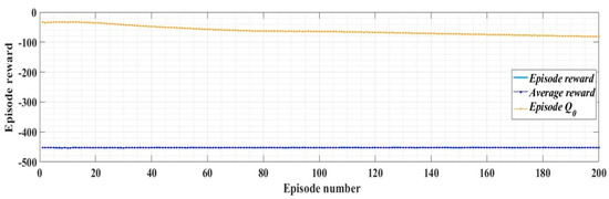 With the values of the circuit elements presented in Table 1, the PI controllers and RL-TD3 agent for control of the DC-AC converter, and for idref = 5 A, iqref = 0 A, udref = 310 V, and uqref = 0 V, Figure 13 presents the reward evolution of the RL-TD3 algorithm performance.