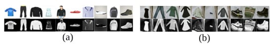 In (a) The Fashion Product Images Dataset (https://www.kaggle.com/paramaggarwal/fashion-product-images-small, accessed on the 26 October 2022) and in (b) the Fashion household dataset.