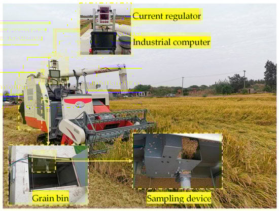 The combine harvester is the most widely used agricultural equipment to efficiently accomplish harvesting work, such as rice, wheat, etc. The harvested grain inevitably contains unwanted impurities, including straw, chaff, and light miscellaneous. The impurities in harvested grain directly affect the workload and production costs of subsequent processing. Impurity rate is the ratio of material mass other than grain to grain mass, which is one of the key performance indicators of the combine harvester and is also the key basis for regulating the threshing and cleaning system [1,2,3]. The detection of the impurity rate during harvesting in real time is conducive to work parameter adjustment and improving the harvesting quality [4,5]. However, the tracked rice combine harvester impurity rates cannot be monitored in real time at present. Due to the lack of parameter regulation basis, the harvest working parameters are set according to the operator’s experience and not adjusted during the operation [6,7]. The harvest quality fluctuates greatly in a complex environment due to the lack of timely information on the impurity rate. The development of a combine harvester impurity-detection system is of great significance to improve harvesting performance. The improvement in impurity detection and other intelligent technology will improve agricultural performance [8].