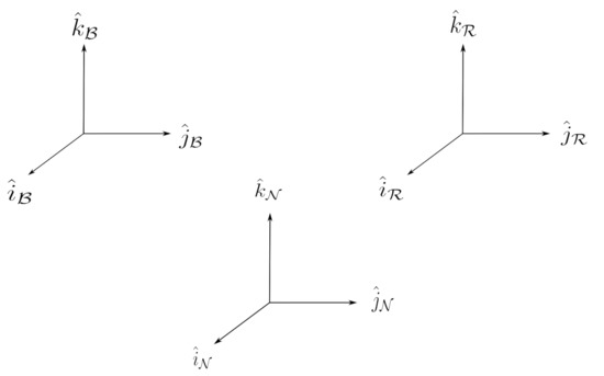 In Figure 5, let represent the Direction Cosine Matrix (DCM) in the body frame attitude with axes and let be the DCM in the reference frame attitude with axes .