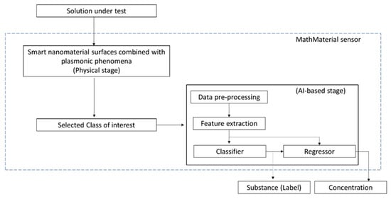 It is expected that by taking advantage of machine learning-based algorithms [28,29], the obtained MathMaterial sensor response can be used to identify a substance (in a determined class) and its concentration using simple data processing, as shown in Figure 6.