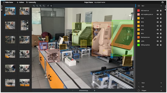 The datasets were obtained from the simulated production line in the Intelligent Manufacturing Technology Laboratory of the School of Control and Mechanical Engineering of Tianjin Chengjian University. Six devices (AGV smart cart, AGV Raspberry Pie cart, mechanical arm, RFID, lathe, and milling machine) of the simulated production line were selected for real-time inspection in the experiment. The datasets used for the experiments are (i) field dataset collection, (ii) dataset labeling, and (iii) dataset construction.