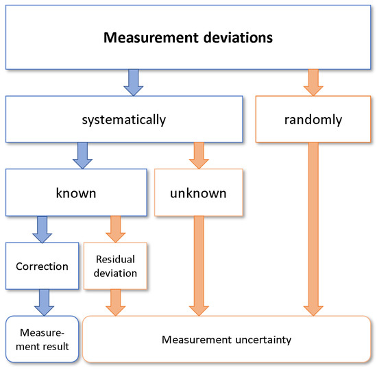 20]. The recorded value lies within a range around the true measurement result. This range is defined as measurement uncertainty and is composed of several types of measurement deviations [