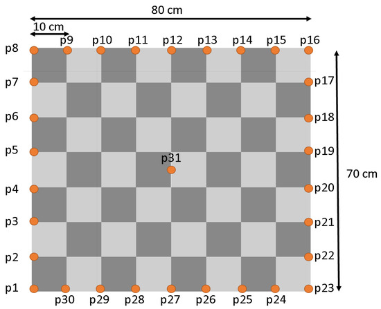 30] measuring 80 cm × 70 cm with a 10-cm grid was chosen. It is shown schematically in