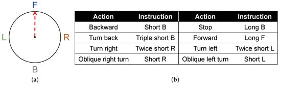 Oblique left turn was used as an example for the navigation coding of the oblique left Turn. (a) Stereo perception of the oblique left turn command in the head. (b) Navigation codes corresponding to head devices.
