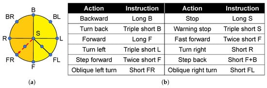 Simple information can be transmitted through the three-dimensional perception of the skin. As for the navigation instructions that meet the requirements of normal travel in daily life, taking into account the dependence of navigation on orientation, the three-dimensional perception of skin can be used for instruction coding, as shown in Figure 7.