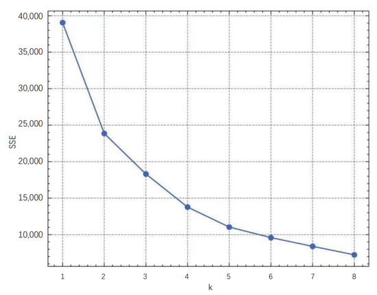 Before training the K-means clustering model, it is necessary to determine the optimal number of classifications. Here, the elbow method is employed. The core idea of elbow methods is that when the number of clusters k is smaller than the true number of clusters, k increases will significantly increase the degree of aggregation of each cluster, which shows a large drop in clustering error (Sum of the Squared Errors), we can compute: