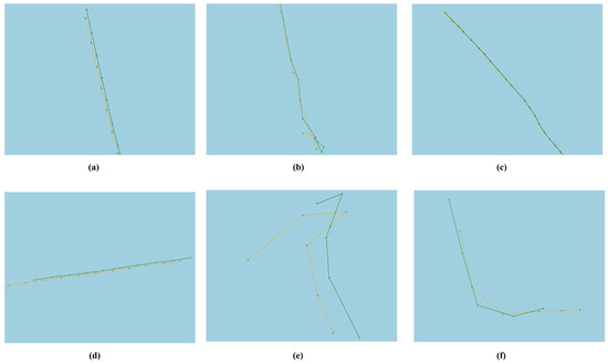 To verify the method’s ability to identify the real transshipment behavior and to classify the level of suspicion according to pre-designed criteria, six legal transfer events have different event characteristics were selected. Their trajectories are shown in Figure 11. These six events are all transshipment events involving tugboats, which are not included in the identification results of Section 3.3.2 and have not participated in clustering model training. Table 13 shows their motion characteristics, clustering results, traffic density feature, and the suspicion level of the identification using the methods in this paper.