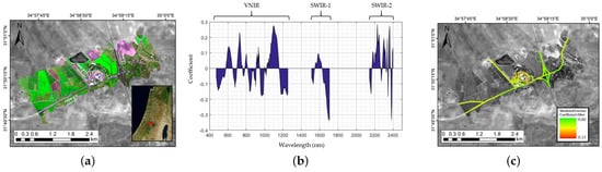 (a) Location selection, (b) coefficient spectra of the band weights in the model, and (c) predicted friction coefficient values for the study site map [27].