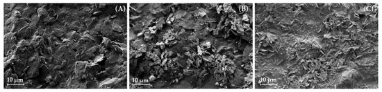 SEM images for (A) bare SPCE, (B) SPCE/N-htGONR/MnO2, and (C) SPCE/N-htGONR/MnO2/GOX are shown.