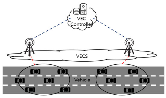 As depicted in Figure 1, the system model consists of three layers: the vehicle, VECS, and VECS controller. The tasks should be offloaded to the VECS for processing because the vehicle has limited computing resources and energy. The VECS has a powerful computing capacity for processing tasks offloaded by vehicles. The VECS controller plays an auxiliary role, which aggregates the neural network parameters of each VECS to help the VECS to take better decisions.