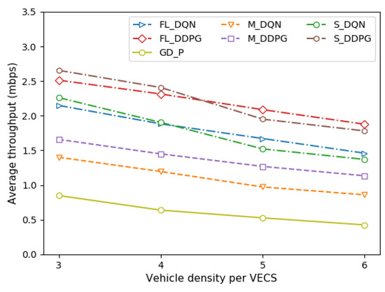 Comparison of average throughput under different VECS densities.