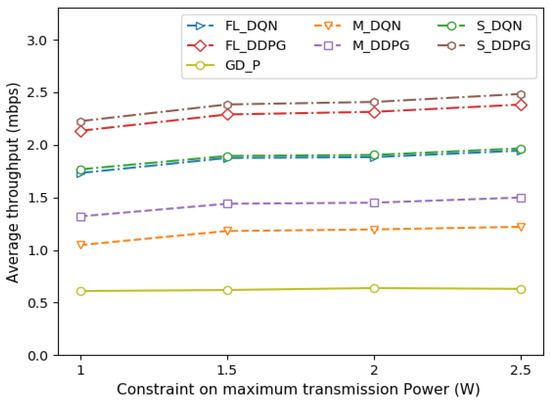 Comparison of average throughput under different power constraints.