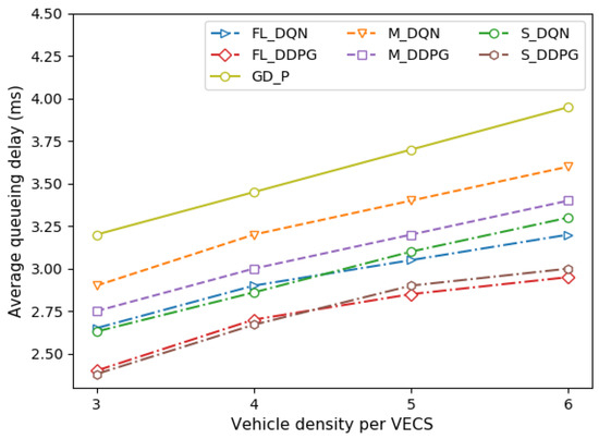 Comparison of queueing delay under different vehicle densities.