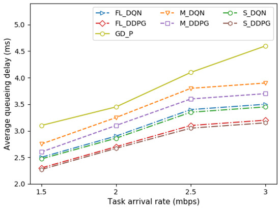 Comparison of queueing delay under different task arrival rates.
