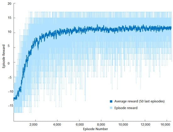A training sample illustration of the average reward versus the number of episodes is illustrated in Figure 3. As can be observed, the curve in the figure shows satisfactory growth and convergence to the maximum average reward as the number of episodes increased. It is worth mentioning that this figure varied slightly depending on the data of each user. However, for all users, the same trend of convergence to the maximum average reward value was observed.