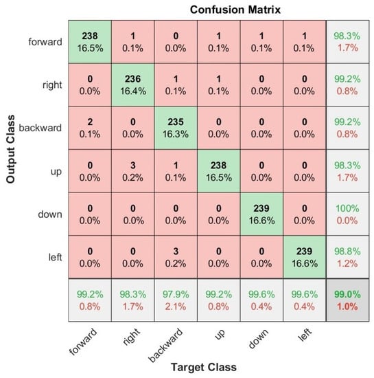 - According to the test results, the best classification accuracies were obtained for static gestures using the Myo armband sensor and were and for the classification and recognition, respectively. On the other hand, for dynamic gestures using the Myo armband sensor, the accuracies were and for the classification and recognition, respectively. The accuracies of the test results for static gestures using the G-force sensor were and for the classification and recognition, respectively. On the other hand, for dynamic gestures using the G-force sensor, the accuracies were and for the classification and recognition, respectively. This indicates that the method based on a DQN for the Myo armband sensor obtained slightly better results than the method based on a DQN for the G-force sensor.