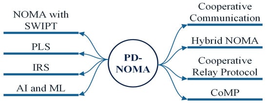 - The current literature on cooperative PD-NOMA is extensively reviewed to provide a better picture of the research that has been conducted in this field. In this paper, we discuss a thorough, up-to-date review of the integration of PD-NOMA with antenna selection schemes, MIMO systems, mmWave, CoMP, cognitive radio, THz bands, cooperative communications, SWIPT, transmit antenna selection, beamforming, clustered-based NOMA, and the other modern communications techniques, in order to improve the systems’ overall rates and, consequently, the spectral efficiency in upcoming wireless networks.