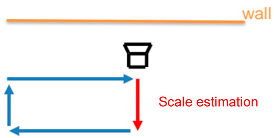 After estimating trajectory by landmark and VIO, the relative trajectory is used in a simple cost function as shown in Equations (2)–(4) to estimate the scale correction with the ordinary least-squares method: