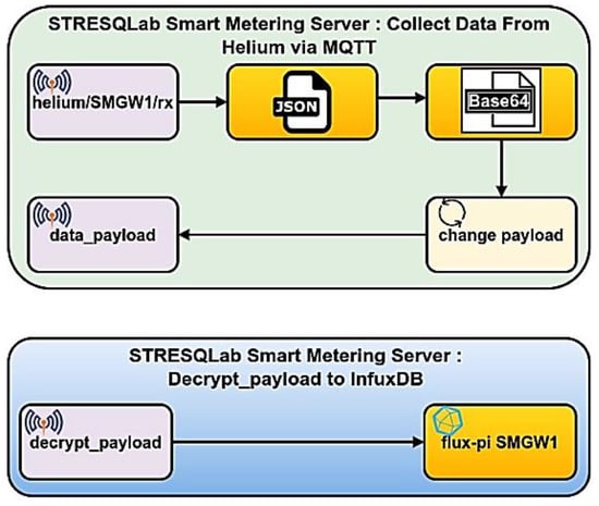 Secure mechanisms are needed that can be implemented at the device level before the data leave the device. These mechanisms should be light and can be implemented in real-time []. The growing complexity of the existing infrastructure’s balance at the same time with data security requirements, which are related to the electricity exchange and billing, needs digitization. An intelligent smart metering system and a Smart Gateway (SMGW), which is placed as a relay between Smart Meters (SM), Consumers, and External Market Participants (EMP), can provide a secure way of making this desirable digitization feasible.