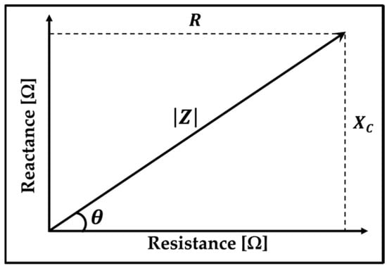 Figure 1 shows the relationship between impedance and its individual components ( and ). It is represented as a vector of a quantity that has both a magnitude () and direction, which in this case is represented by the phase angle ().