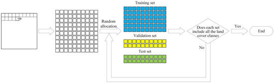 In order to solve the problems of existing dataset partition methods, this paper introduces the patch allocation scheme based on the non-overlapping sliding window strategy commonly used in computer vision into the sematic segmentation of HSRSI, and combines a judgment mechanism to make up for the disadvantage that not all classes can be included in the training set after the patches are randomly allocated. Considering the actual applications, the background pixels are retained and information leakage can be effectively avoided at the same time. The method can be used to fairly compare the segmentation performance of different models. The basic idea for dataset partitioning with the method is shown in Figure 2, and the specific steps are as follows: