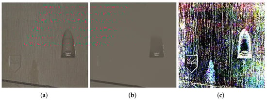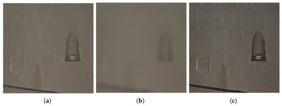 Original and illumination images. (a) Original image; (b) Illumination image estimated by Gaussian filter; (c) Illumination image estimated by AGF.