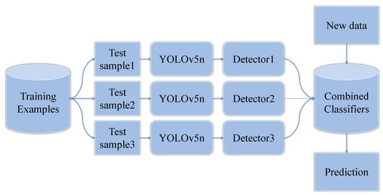 Ensemble learning can be divided into two categories according to training methods: Boosting and Bagging. Boosting constructs a series of object detectors through serial learning, which means the new detector is improved based on the adjustment to the mistake detection data weight in the last detector. In contrast, Bagging is a parallel learning method that utilizes the independence of different detectors to improve performance, while a single detector cannot extract whole features. In our work, Bagging is adopted as the ensemble learning method while we integrate different kinds of models which are independent of each other. The structure of ensemble learning is shown in Figure 6. It is worth noticing that our proposed integrated learning model is a parallel structure, corresponding to the use of multi-threaded parallel learning operations to avoid bringing excessive consumption of model training and inference time.