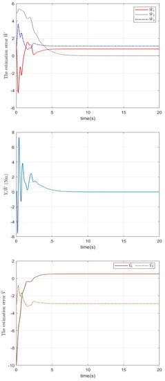 where is a positive control gain and and are the estimators of W and V, respectively. The estimators are updated by