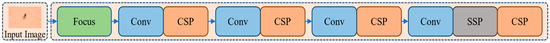In the DL-based model the hidden layers are gradually increasing, which extracts the semantic information of high-level features more precisely, with a reduced number of dimensions. In contrast, the dimensionality of the shallow layer is higher, which extracts the low-level feature in the network. For weak and small object detection with a few features, deep CNN may fail to achieve promising results. To increase the feature extraction capability for the weak and smaller objects in the input image, it is essential to make full use of the high-level features of the CNN in the shallow layer. Therefore, in the features extraction part, we extended the thickness of the CSP module in the shallow layer for feature extraction. This strategy is a follow-up in the upcoming layer to extract the multi-scale object features from shallow to deeper layers. Furthermore, when deepening the CSP in the entire network for feature extraction by controlling the depth and width factors, we expand the CSP module thickness to extract shallow features. The backbone part of the proposed model is shown in Figure 2. This strategy increases the model size and complexity but also increases the capability to extract prominent features from the shallow layers which are beneficial to detect small and weak objects in images. Moreover, the CSP part splits the features maps into two branches for feature extraction and then fuses them, which can obtain a richer gradient combination with a reduced number of calculations.