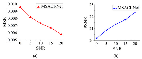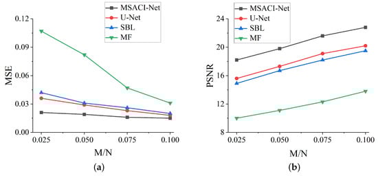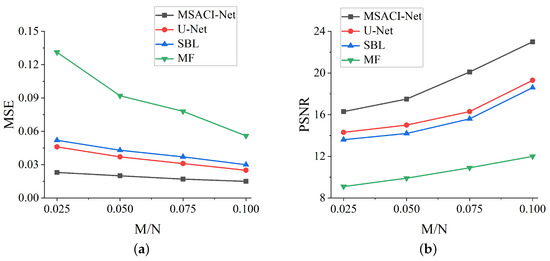 MSACI-MNIST: Imaging results with different scene information sampling ratio: (a) MSE performance; (b) PSNR performance.