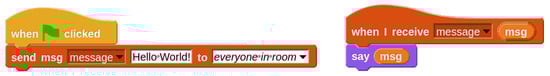 Figure 2. Example of sending and receiving messages in NetsBlox.