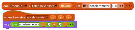6. Jean, D.; Broll, B.; Stein, G.; Lédeczi, Á. Your Phone as a Sensor: Making IoT Accessible for Novice Programmers. In Proceedings of the 2021 IEEE Frontiers in Education Conference (FIE), Lincoln, NE, USA, 13–16 October 2021; pp. 1–5. [Google Scholar] [CrossRef]