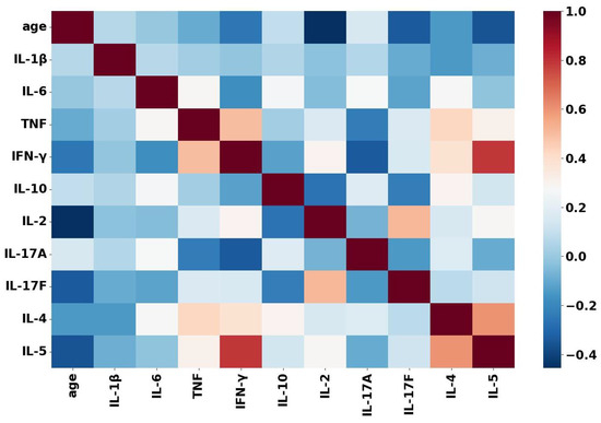 Indeed, cytokines are vital proteins that play a major role in the human body. Therefore, numerous studies have analyzed the correlations between each other and other disease and health conditions. Vculic et al. investigate the correlations among cytokines and age in healthy subjects and among cytokines and age in patients with autoimmune thrombocytopenic [24], whereas the correlations among cytokines, bronchopulmonary dysplasia and modality of ventilation in preterm newborns are presented by Gitto et al. [25]. Hur et al. present how 27 inflammatory cytokines correlate to each other after major burn injury [26].