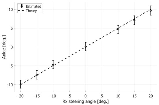 Estimated and theoretical tilt angles of wavefronts obtained at different Rx steering angles.