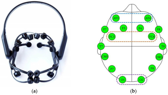 (a) 14-channel Emotiv EPOC X; (b) electrodes position.