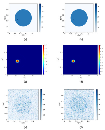 When and , the Contrast Source Inversion algorithm can reverse meaningful results. If the continues to change, the results generated by the Contrast Source Inversion algorithm will lose their reference value. Therefore, the calculation error is represented by ‘Non’.