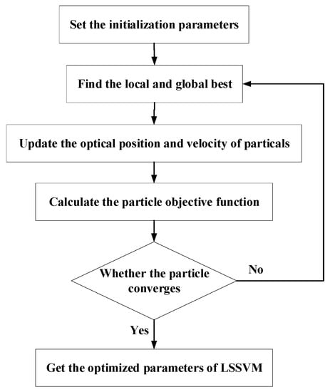 A flowchart for the PSO–LSSVM is shown in Figure 2, and the specific steps are described next.