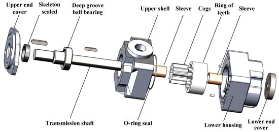 The subject of this study is a particular type of linear conjugate internal gear pump. The pump was an innovative three-port internal gear pump, and marine hydraulic systems utilize this type of pump due to its low flow pulsation and four-quadrant operation capability. Figure 4 depicts the internal structure of the internal gear pump, and Table 2 lists the technical parameters.