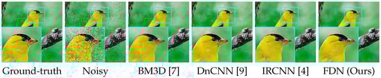 - Mairal, J.; Bach, F.; Ponce, J.; Sapiro, G.; Zisserman, A. Non-local sparse models for image restoration. In Proceedings of the 2009 IEEE 12th International Conference on Computer Vision, Kyoto, Japan, 29 September–2 October 2009; pp. 2272–2279. [Google Scholar] [CrossRef]
