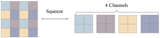 Squeeze. The Squeeze layers take every other element of the intermediate latent variables, resulting in new downscaled latent representations with quadruple channels, as illustrated in Figure 4.