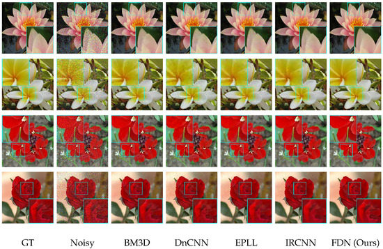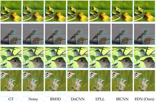 Quantitative Results. The results of denoising the RICE1 and RICE2 [36] datasets with = 30, 50, and 70 are reported in Table 2. FDN improves by 1.13 dB–1.74 dB on RICE1 with different noise levels compared with the highest results from other competitive methods. On RICE2, FDN outperforms other methods when the noise levels are large, i.e., achieving increases of 0.97 dB and 1.55 dB for = 50 and 70, respectively. These results demonstrate that FDN is also capable of restoring images following complex distributions.