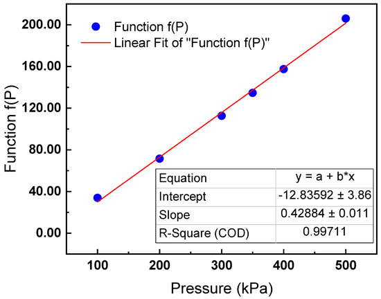 Function f(P) can be calculated using the abovementioned parameters. The results are shown in Figure 3.