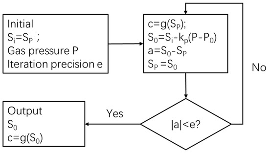 The essence of the pressure correction model is to correct the measured PA signal SP to the PA signal S0 under the reference pressure and then to calculate the actual gas concentration through Equation (9). It can be seen from Equation (12) that the gas volume fraction is needed to calculate ΔSP, but the gas volume fraction is unknown, so it is necessary to use an iterative method to obtain the corrected result. The iteration process is shown in Figure 14.