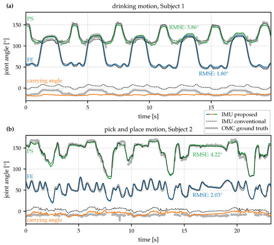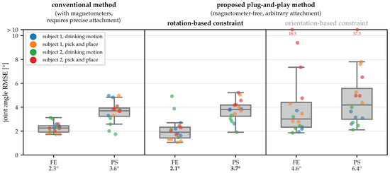 - Müller, P.; Bégin, M.A.; Schauer, T.; Seel, T. Alignment-Free, Self-Calibrating Elbow Angles Measurement Using Inertial Sensors. IEEE J. Biomed. Health Inform. 2017, 21, 312–319. [Google Scholar] [CrossRef]